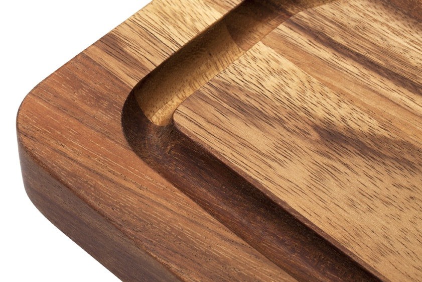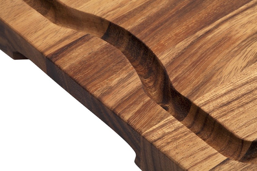This fabulous board is built for entertaining and ideal for use at the BBQ. It has a wide juice lane, perfect for catching all those juices from cooking on the BBQ, and stops them running all over your equipment, deck and kitchen. It has convenient undercut handles making it easy to pick up and transport. The clever undercut handles ensure there is still plenty of available surface area on the board for cutting, carving and serving. Large enough for any occasion whether it is a family lunch or a party. Made from 100% eco-friendly Acacia wood. A perfect gift for any Dad, or BBQ tragic.